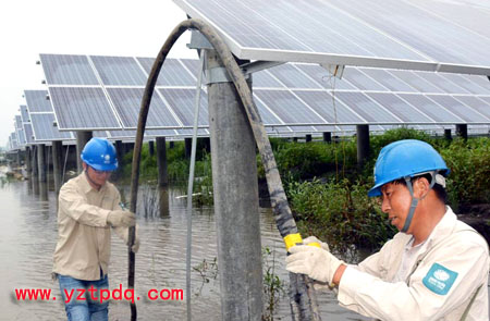 寶應(yīng)漁光互補30兆瓦光伏項目,位于揚州市寶應(yīng)縣射陽湖鎮(zhèn),占地面積930畝,于2013年4月8日開工建設(shè),10月31日并網(wǎng)發(fā)電。經(jīng)寶應(yīng)縣供電公司工程部負責人介紹,今年4月初,該供電公司接受該項目工程總承包委托。在項目建設(shè)過程中,公司積極主動工作,從7.5千米長的110千伏線路施工到110千伏變電接入間隔的施工,嚴格按照施工圖紙進行,監(jiān)理全程跟蹤監(jiān)督,對每道工序嚴格把關(guān),同時,認真為客戶做好“漁光互補”光伏項目申報、接入方案制定、基建臨時用電、項目驗收、運行值班人員安全培訓(xùn)等工作。
