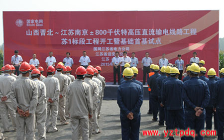 8月26日上午10時(shí),山西晉北—江蘇南京±800千伏特高壓直流輸電線(xiàn)路工程蘇1標(biāo)段工程開(kāi)工暨基礎(chǔ)施工首基試點(diǎn)活動(dòng)在徐州豐縣趙莊鎮(zhèn)舉行。這標(biāo)志著首條由國(guó)網(wǎng)江蘇省電力公司負(fù)責(zé)建設(shè)管理的特高壓直流線(xiàn)路工程正式開(kāi)建。