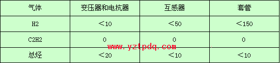 表2-3 運(yùn)行中變壓器、電抗器和套管油中溶解氣體含量的注意值