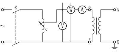 電壓互感器空載勵磁特性試驗接線如圖1-4所示?,F(xiàn)場試驗時,電壓互感器高壓側開路,低壓側通以額定電壓,讀取其空載電流及空載損耗。