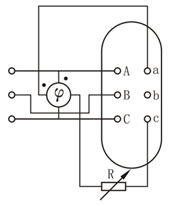 試驗時,相位表的電壓線圈按圖所示極性接于被試品的高壓,電流線圈通過一個可變電阻接入被試品低壓的對應端子上。當被試變壓器高壓通入三相交流電壓時,在其低壓感應出一個一定相位的電壓。由于介入法人是一個電阻負荷,所以低壓側電流和電壓同相位。因此可以認為高壓電壓對低壓電流的相位就等于高壓電壓對低壓電壓的相位,根據(jù)相位表所測得的相位差即可知高、低壓間的時鐘序號即聯(lián)接組標號。使用相位表法測量時,應注意以下問題: