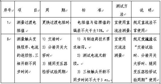 為了解決分接開關(guān)現(xiàn)場(chǎng)試驗(yàn)問題,電力研究單位進(jìn)行了大量的研究和現(xiàn)場(chǎng)試驗(yàn)工作,將交流測(cè)試技術(shù)應(yīng)用于分接開關(guān)現(xiàn)場(chǎng)試驗(yàn),獲取了必要的試驗(yàn)數(shù)據(jù),積累了一定經(jīng)驗(yàn),并制定出電力行業(yè)新標(biāo)準(zhǔn)《DL/T265-2012變壓器有載開關(guān)現(xiàn)場(chǎng)試驗(yàn)導(dǎo)則》。制定新標(biāo)準(zhǔn)的目的在于,規(guī)范高壓試驗(yàn)專業(yè)分接開關(guān)現(xiàn)場(chǎng)試驗(yàn)項(xiàng)目、試驗(yàn)方法、缺陷判斷標(biāo)準(zhǔn)、分析方法,對(duì)各類有載分接開關(guān)投運(yùn)前及按檢修試驗(yàn)周期進(jìn)行有效試驗(yàn),準(zhǔn)確判定分接開關(guān)的動(dòng)作特性,可靠發(fā)現(xiàn)分接開關(guān)切換過程中的異常情況,準(zhǔn)確判定分接開關(guān)缺陷。新標(biāo)準(zhǔn)對(duì)測(cè)量變壓器有載分接開關(guān)的測(cè)試方法、測(cè)量項(xiàng)目、測(cè)試周期做出了明確規(guī)定。