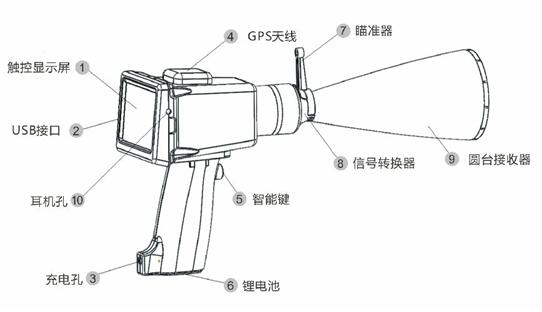 7)瞄準(zhǔn)器:用于準(zhǔn)確定位被檢測(cè)位置