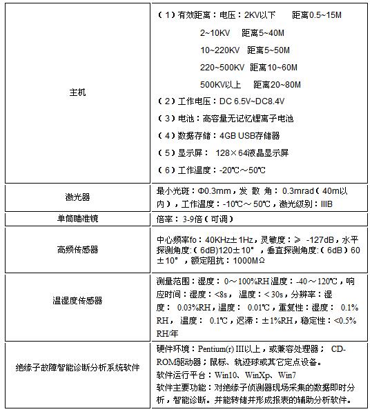 絕緣子故障偵測器產(chǎn)品技術(shù)指標(biāo)