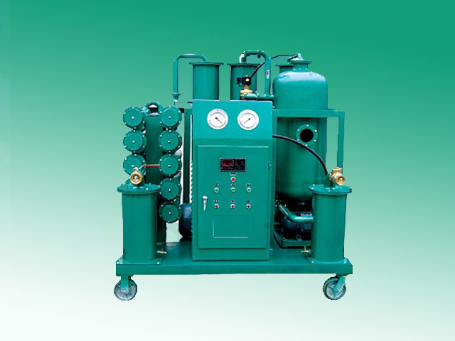真空濾油機是根據水和油的沸點不同原理而設計的,它由真空加熱罐精濾器、冷凝器、初濾器、水箱、真空泵、排油泵以及電氣柜組成的。真空泵將真空罐內的空氣抽出形成真空,外界油液在大氣壓的作用下,經過有入口管道進入初濾器,清除較大的顆粒,然后進入加熱罐內,經過加熱等40~75℃的油通過自動油漂閥,此閥是自動控制進入真空罐內的油量進出平衡。經過加熱后的油液通過噴翼飛快旋轉將油分離成半霧狀,油中的水份急速蒸發(fā)成水蒸氣并連續(xù)被真空泵吸入冷凝器內。進入冷凝器的水蒸氣經冷卻后再返原成水放出,在真空加熱罐內的油液,被排油泵排入精濾器通過濾油紙或濾芯將微粒雜質過濾出來,從而完成真空濾油機迅速除去油中雜質、水份、氣體的全過程,使?jié)崈舻挠蛷某鲇吞幣懦鰴C外。