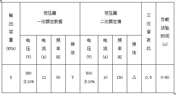 5kVA/360V150Hz感應耐壓試驗裝置是電力系統(tǒng)、發(fā)電廠、變電站、供配電網(wǎng)絡中對小容量電力變壓器、串級式高壓電壓互感器進行倍頻感應高壓試驗的基本設備之一。也可對各種低壓電子、儀表電源變壓器,電感線圈、電器線圈進行倍頻倍壓試驗,同時也可作為功率不大于1千瓦的倍頻電源用于某些特殊電器設備的供電或測試。