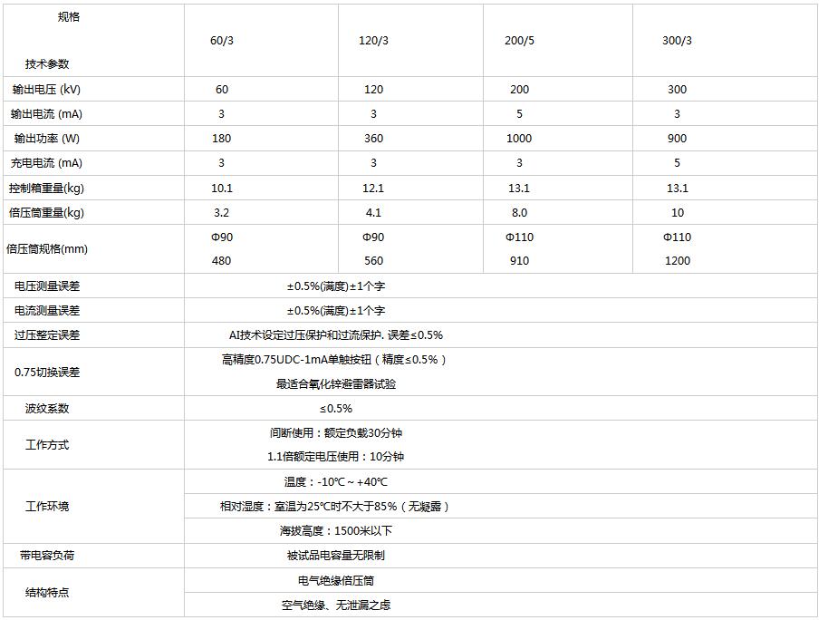 直流高壓發(fā)生器主要適用于電力部門(mén)、工礦、冶金、鋼鐵等企業(yè)動(dòng)力部門(mén)對(duì)氧化鋅避雷器、電力電纜、變壓器、斷路器、發(fā)電機(jī)等高壓電氣設(shè)備進(jìn)行直流耐壓試驗(yàn)或直流泄露電流試驗(yàn)。TPZGF系列直流高壓發(fā)生器應(yīng)用AIPWM技術(shù),對(duì)PWM技術(shù)的不準(zhǔn)確線性度進(jìn)行了調(diào)整,使儀器精度得到了大幅度提高。并采用AI技術(shù)屏幕設(shè)定過(guò)壓保護(hù)和過(guò)流保護(hù)取代了數(shù)字撥盤(pán)開(kāi)關(guān)只能設(shè)定電壓值,不能設(shè)定電流值及電壓飄移的問(wèn)題。升壓方式:手動(dòng)升壓。0.75UDC1mA功能按鈕,方便氧化鋅避雷器試驗(yàn),精度≤0.5%。增加了任意電壓、電流下計(jì)時(shí)功能,及總時(shí)間T1和分段計(jì)時(shí)T2功能。儀器增加了萬(wàn)年歷和時(shí)間功能。