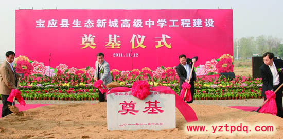 寶應(yīng)縣委、縣政府11月12日上午隆重舉行生態(tài)新城高級中學工程建設(shè)奠基儀式,寶應(yīng)縣領(lǐng)導(dǎo)仲生、王庭國、秦有芳、侯承海、朱宋華、楊善慧,楊洪國、楊步云等出席并為工程奠基培土。