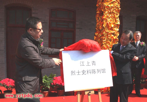 揚(yáng)州市委書(shū)記、市長(zhǎng)謝正義,江上青烈士親屬代表彭健明為史料陳列館揭牌。省民政廳常務(wù)副廳長(zhǎng)侯學(xué)元,以及徐益民、趙旻、張躍進(jìn)、張愛(ài)軍、袁秋年、盧桂平、陳揚(yáng)、王智永、袁啟俊、桑光裕等市四套班子領(lǐng)導(dǎo)出席開(kāi)館儀式。