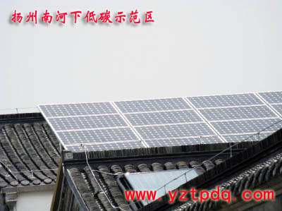 昨天上午,記者在南河下低碳示范區(qū)內(nèi)看到,戶外路燈已經(jīng)安裝結(jié)束。項目負責人介紹,這些路燈都是采用的節(jié)能燈,電源全部來自太陽能光伏板發(fā)電。項目負責人將記者帶進項目展示區(qū)的3號樓二樓平臺,兩名技術人員正在平臺一個“人”字頂上安裝光伏板,光伏板面積為10多平方米。“光伏板分別安裝在3號樓和11號樓平臺上,共有24塊板子,總發(fā)電能力為4.32千瓦。”該項目負責人介紹,整個路燈的供電全部依賴上述太陽能發(fā)電。