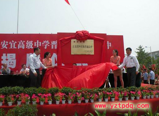 寶應(yīng)安宜高級中學(xué)歡歌笑語,彩旗招展。一場盛大慶典,宜中晉升“省四星”級高中揭牌儀式在校園內(nèi)隆重舉行。在創(chuàng)建四星級學(xué)校的濃熱氛圍中,學(xué)校環(huán)境優(yōu)美,充滿生機,到處一片“園林化、生態(tài)化、人文化”氣息。其發(fā)展速度之快,令人驚喜。