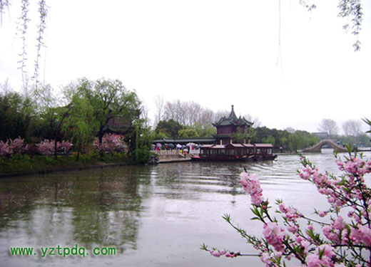 很多地方本來(lái)很美,但是也許旅游旺季時(shí)人多了也沒(méi)有意思,但那天恰好全無(wú)喧囂,沒(méi)有到處飄揚(yáng)的導(dǎo)游旗,沒(méi)有小喇叭的尖叫,就覺(jué)得什么都很好,沒(méi)有一處“視覺(jué)污染”。于是就覺(jué)得二十四橋特別詩(shī)情畫(huà)意,覺(jué)得詩(shī)畫(huà)長(zhǎng)廊特別舒展開(kāi)闊,覺(jué)得“四橋煙雨”特別清新靜美……這就值得流連又流連了,春意濃濃地化在瘦西湖中,慢慢的泡開(kāi)來(lái),溢了滿(mǎn)湖;而我們,真甘愿在這里沉沉地品這杯泡得恰到好處的春茶。