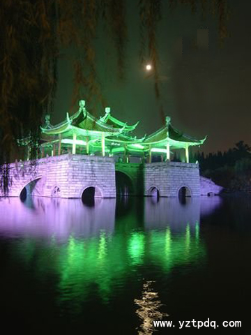 揚(yáng)州曾經(jīng)被稱為月亮城,一首“天下三分明月夜,二分無賴是揚(yáng)州”使揚(yáng)州占去了月亮三分之二的光輝。傳說,中秋夜在揚(yáng)州的五亭橋可以看到15個(gè)月亮。