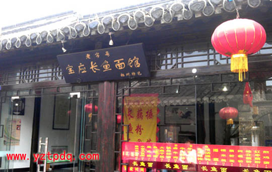 揚州東關(guān)街的長魚面館是一個地道寶應(yīng)氾水人開的夫妻店,兩年前他們勇敢地把寶應(yīng)長魚面的牌子掛在揚州東關(guān)街,成為揚州開寶應(yīng)長魚面館的第一人。揚城的面館隨處可見,各種配料的面味道都很好,價格也不貴,都 有固定的人群。要讓寶應(yīng)長魚面在東關(guān)街立足實屬不易。這兩位執(zhí)著的寶應(yīng)人,他們堅持從寶應(yīng)進野生鱔魚,堅持使用寶應(yīng)當?shù)刈鞣挥脡赫シ椒ㄉa(chǎn)的油(成本比寶應(yīng)當?shù)氐倪€高),每天堅持六個小時的時間熬湯,熬湯用的不銹鋼湯桶都熬壞了許多只。他們本本分分的做事,認認真真地下好每一碗面。這里沒有電視廣告的宣傳,只有吃過他一碗碗面的人的口碑,始終如一的堅持質(zhì)量,任何人任何時候來吃味道都一樣。許多偶爾來店吃過長魚面的人,以后就成為該店的??停€會主動介紹給身邊的朋友。如果你去過揚州東關(guān)街的長魚面館,你還會發(fā)現(xiàn)這里客人的不同之處,他們注重營養(yǎng)注重美食,由于互相常見面,還會互相招呼聊一聊,非常和諧。有的比較遠的還介紹自己吃面的方法:分開打包帶回放在冰箱里,可一周來兩次,味道不變;有的它帶回去作為一道主食,為家宴增色不少。兩位店主閑暇時也會旁聽,但從不插話,如你需要問他們有關(guān)問題,你會得到不加渲染的回答,這也可能是寶應(yīng)人的質(zhì)樸。