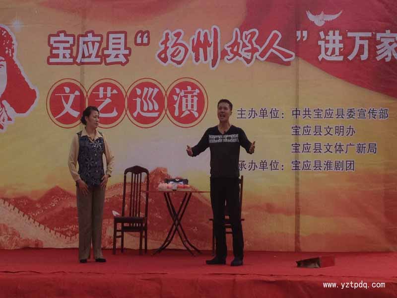 寶應(yīng)縣淮劇團的演員們以農(nóng)民朋友喜聞樂見的淮劇形式,展現(xiàn)了愛崗敬業(yè)馬小梅、36年如一日照顧特殘軍人丈夫?qū)O云鳳、十年四救落水者的平民英雄張志成、用孝行和大愛撐起整個家的李順梅以及視腦癱小姑子如親妹、待多病的婆婆勝似親媽蔣長鳳等5位“揚州好人”的風(fēng)采。他們精彩的演出博得了現(xiàn)場觀眾的陣陣掌聲。全鎮(zhèn)近千名群眾觀看了演出,通過文藝巡演傳遞了正能量,弘揚了新風(fēng)尚。