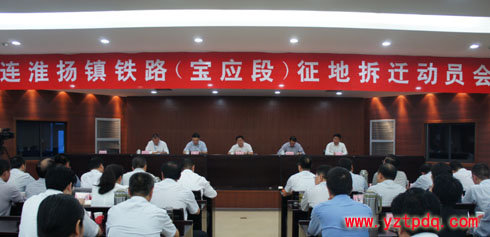 為加快連淮揚(yáng)鎮(zhèn)鐵路(寶應(yīng)段)建設(shè)步伐,保障項(xiàng)目順利實(shí)施,9月30日,江蘇寶應(yīng)縣委、縣政府專題召開(kāi)連淮揚(yáng)鎮(zhèn)鐵路(寶應(yīng)段)征地拆遷動(dòng)員會(huì)??h委副書記、代縣長(zhǎng)王逍霄在會(huì)議上要求,要圍繞“高”、“嚴(yán)”、“快”三個(gè)字,做好征地拆遷工作。縣委常委、常務(wù)副縣長(zhǎng)張偉主持會(huì)議,副縣長(zhǎng)閆偉參加,市鐵辦主任尹建平、中鐵十九局集團(tuán)連淮揚(yáng)鎮(zhèn)鐵路項(xiàng)目指揮長(zhǎng)劉宏圖應(yīng)邀出席會(huì)議。