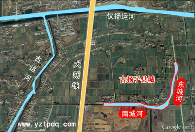 2014年12月4日,江蘇省紅樓夢學(xué)會(huì)會(huì)員陸守超,根據(jù)衛(wèi)星地圖結(jié)合史料記載,在儀征經(jīng)濟(jì)開發(fā)區(qū)(新城鎮(zhèn)東南)越江村或東升村境內(nèi),發(fā)現(xiàn)疑似古揚(yáng)子縣城的東城河和南城河遺存。古揚(yáng)子縣城就位于當(dāng)中焦莊組、曹莊組和邵莊組一帶。在古揚(yáng)子縣城遺址的東北角還發(fā)現(xiàn)了都天廟遺址。