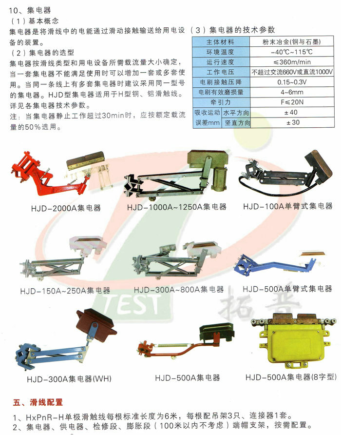 注:1、滑觸線標準長度:6m。