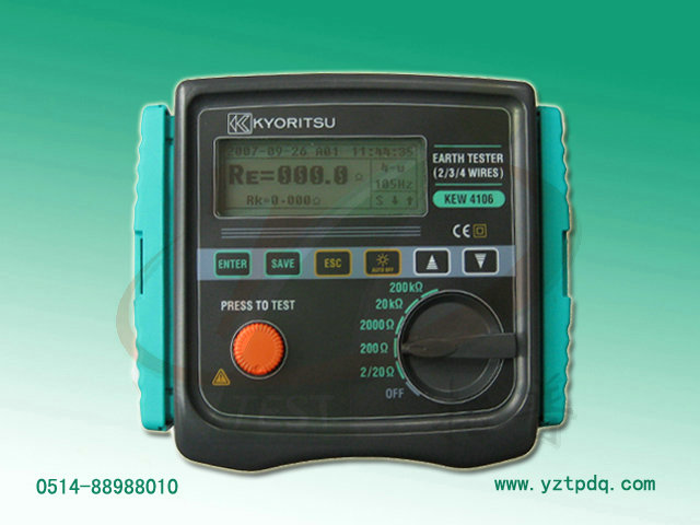 KEW 4106接地電阻測(cè)試儀是一款數(shù)字式智能化接地電阻測(cè)試儀,可進(jìn)行測(cè)試環(huán)境參數(shù)測(cè)量Ust(干擾電壓),F(xiàn)st(干擾頻率)。具有數(shù)據(jù)傳輸(和PC連接),在PC端可進(jìn)行數(shù)據(jù)處理分析功能。且防水防塵功能強(qiáng),以防水防塵IEC60529(IP)為準(zhǔn),可在惡劣環(huán)境下進(jìn)行測(cè)試。